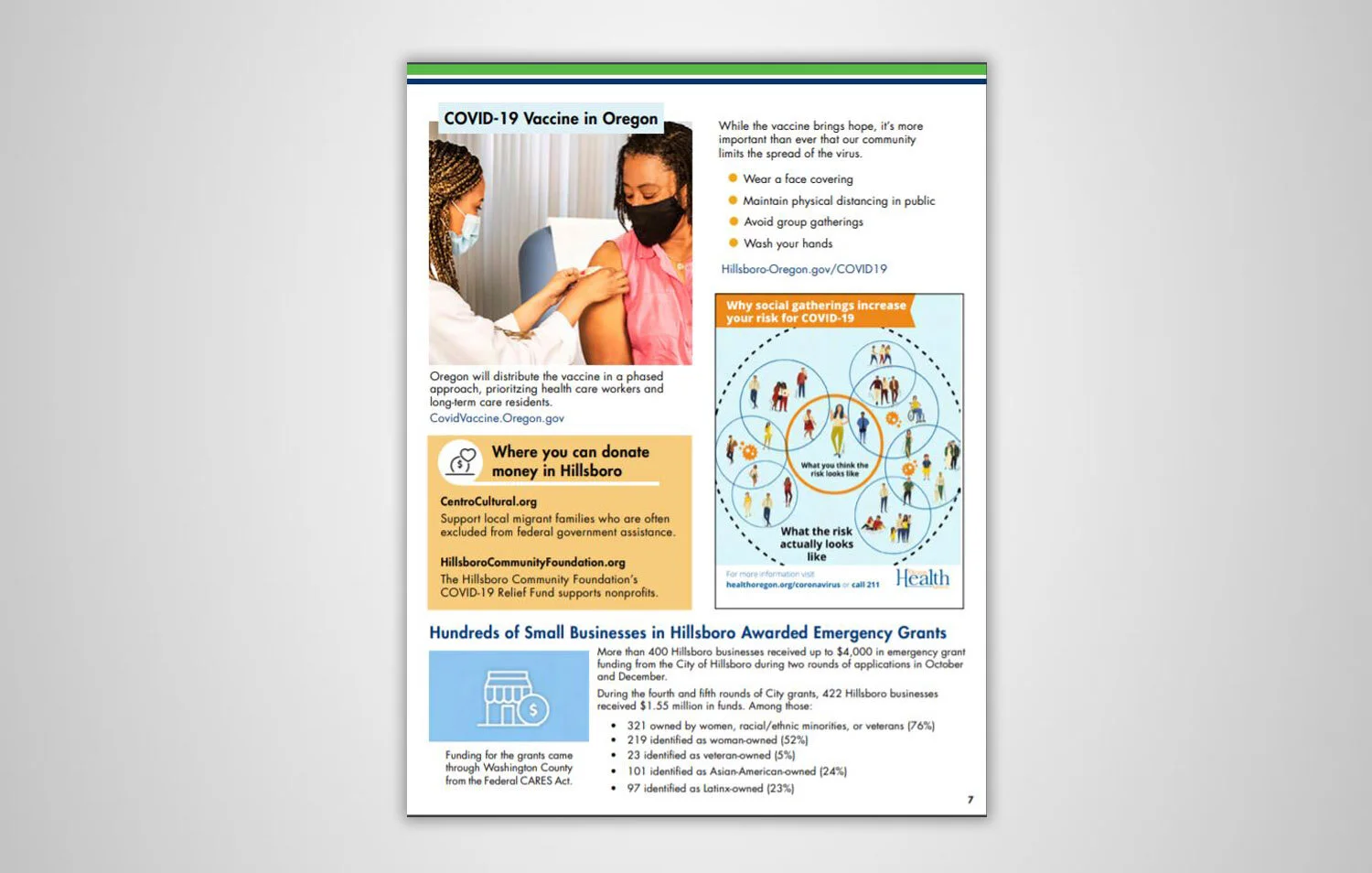 COVID-19 informational postcard sent to all Hillsboro residents. Reverse side in English.