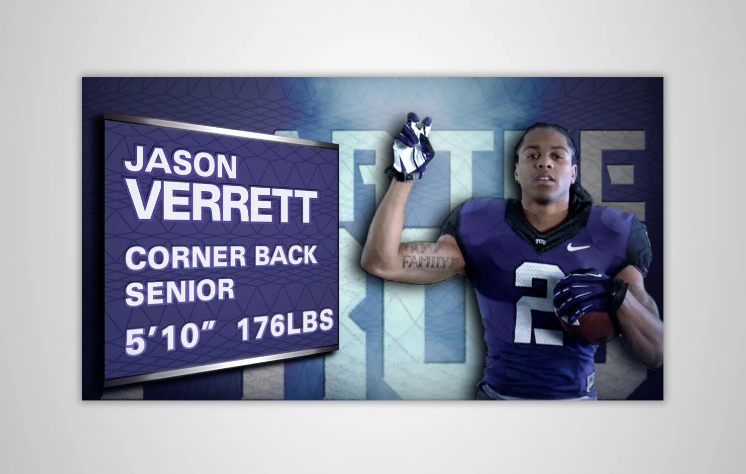 Headshot graphics for Texas Christian University. Text designed by colleague, layout designed by me.